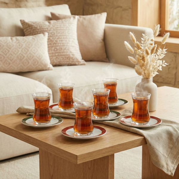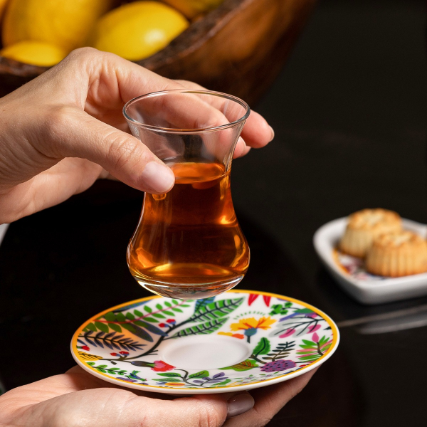 14. Set of 6 Fares Istikanahs & Saucers